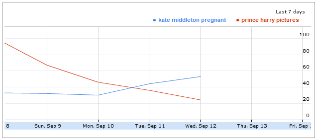 As shown below on Google web search chart, the Kate Middleton terms are trending upward. (Source: Google Insights)