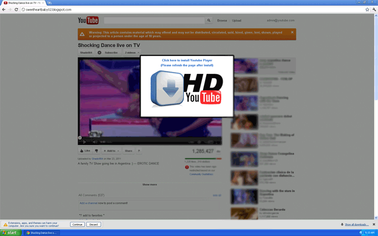 YXH-youtube_player.xpi and YXH-youtube_player.crx are fake YouTube plugins that spread via social network-based attacks. Although the full extent of their capabilities hasn't yet been analyzed, YXH-youtube_player.xpi and YXH-youtube_player.crx are capable of being used to hijack your web browser and redirect it to other websites. This, in turn, can be used to conduct DDoS crimes, steal information in phishing attacks or expose you to the installation of other PC threats. SpywareRemove.com malware researchers recommend that you familiarize yourself with common social engineering attacks for fake YouTube plugins to avoid them, and remove YXH-youtube_player.xpi and YXH-youtube_player.crx, if required, by using anti-malware software of good repute.
