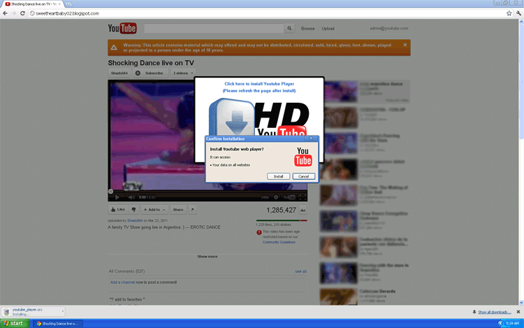 YXH-youtube_player.xpi and YXH-youtube_player.crx proliferate via social engineering attacks that use Facebook and Facebook-based features (such as its Wall and the Facebook Comments Box). Compromised accounts will post links with obfuscated URLs that, when clicked, redirect victims to a fake YouTube site that hosts YXH-youtube_player.xpi and YXH-youtube_player.crx downloads. The surest method of protecting yourself from YXH-youtube_player.xpi and YXH-youtube_player.crx is to avoid interaction with links that obscure their URLs.