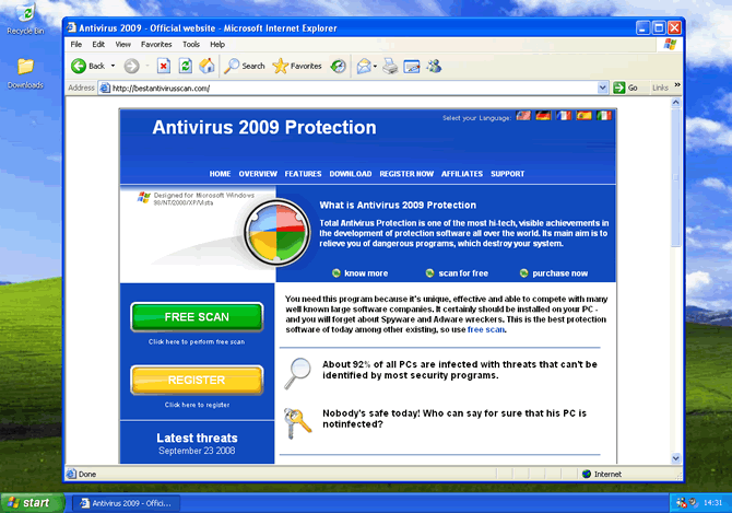 BestAntivirusScan.com should be blocked and never visited under any situation. Because Antivirus 2009 is an insignificant program and it can be said that BestAntivirusScan.com is a worthless website that would only waste your time and potentially waste your money if you fall victim to its scam. Antivirus 2009 and the infection that may redirect you to BestAntivirusScan.com is usually difficult to remove manually. It may be best to use an up-to-date scan tool to locate and remove the BestAntivirusScan.com or Antivirus 2009 infection from your system.