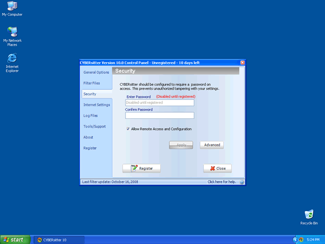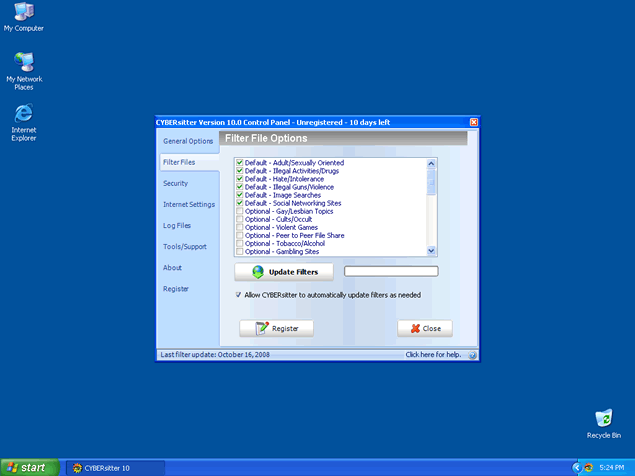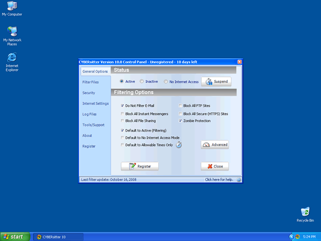CyberSitter is a dangerous keylogging application that has the ability to record keystrokes. CyberSitter may send monitored activity to a remove attacker where they may use this information against you. CyberSitter can lead to identity theft which. CyberSitter, after installed, runs in the system background going undetected where malicious activities are taking place without your knowledge. CyberSitter may be difficult to manually detect and remove. It is important to detect CyberSitter with a good spyware scan tool.