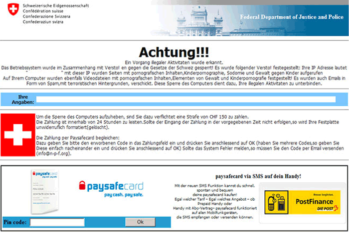 The Fake Federal German Police (BKA) notice variante program has no way of detecting any illegal actions on your PC, and you should never mistake Fake Federal German Police (BKA) notice variante for a legitimate legal authority. Fake Federal German Police (BKA) notice variante's presence in your PC is just a convoluted ransom scheme, with two convenient and fast payment-processing options (Ukash and paysafecard) at the end.