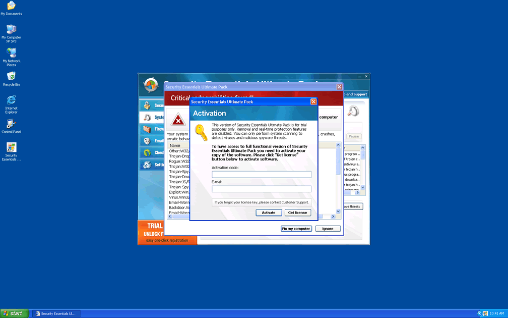 Click "Yes, activate..." to register your copy of Security Essentials Ultimate Pack Pack and perform a threat removal on your system. - Hijacking your web browser. Browser hijacks can create fake errors, redirect you to harmful websites and change browser settings like your homepage.