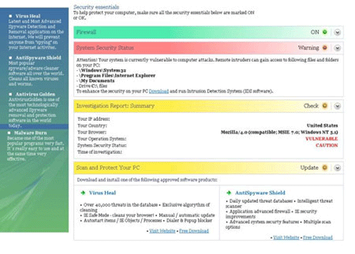 You also should be attentive to the various disguises fake security products from StartPagePreview.com/security/xp/ are likely to use during their attacks. Some of the samples of brand names that malware experts have come across include Win 7 Defender Pro, Privacy Protection, XP Home Security 2012, XP Guardian, Vista Antivirus Pro 2010 and Total Win 7 Security. However, this list isn't conclusive, and new members are being added to prominent scamware families on a regular basis.