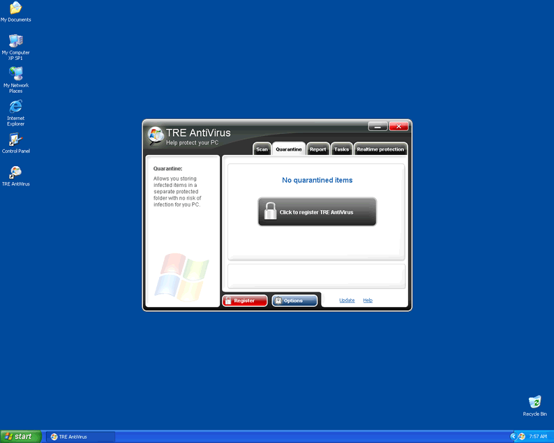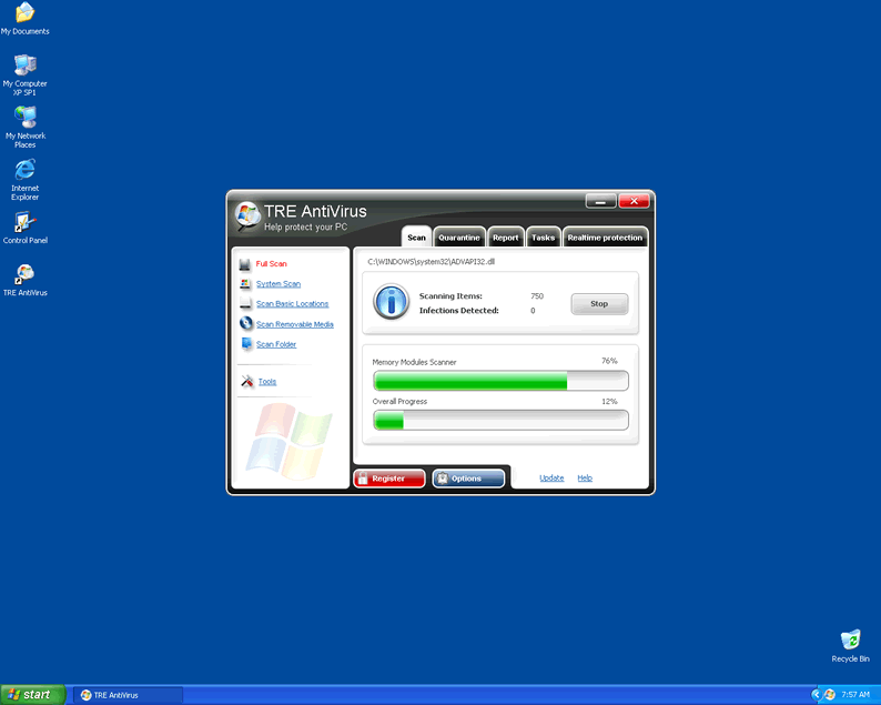 TRE Antivirus is a rogue anti-spyware program. TRE Antivirus comes from the group of hackers that make and sell the fake security programs such as WiniGuard and Soft Cop. TRE Antivirus is not able to detect and remove parasite threats even thought it seems that it detects it in a system scan. The system scan conducted by TRE Antivirus is bogus. TRE Antivirus does not have the capability to detect and remove parasites.