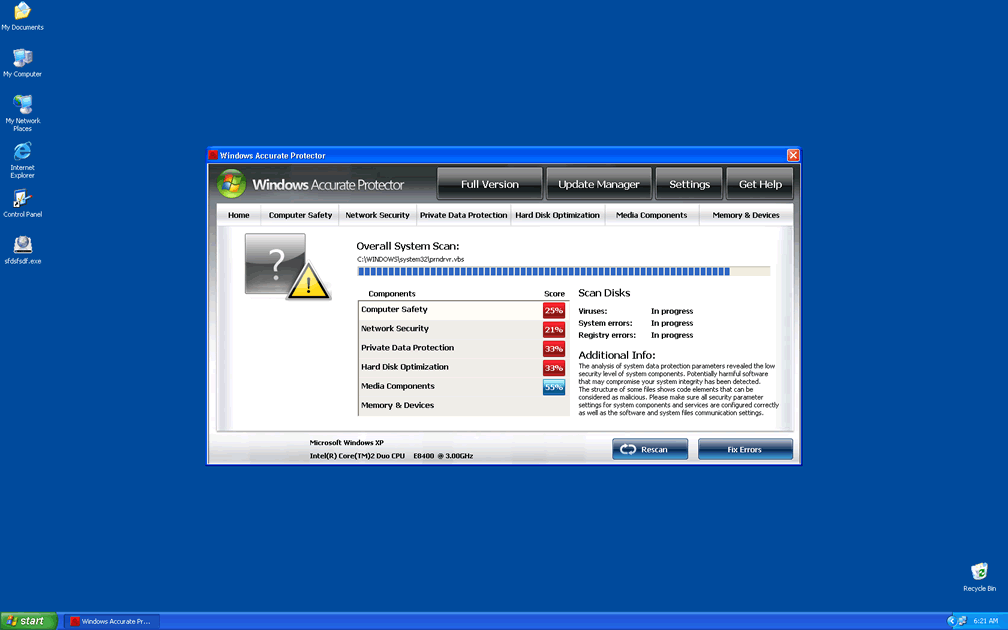 A close look at Windows Accurate Protector's real functions, as opposed to its fake security-related ones, will show a more sinister side to Windows Accurate Protector's capabilities: