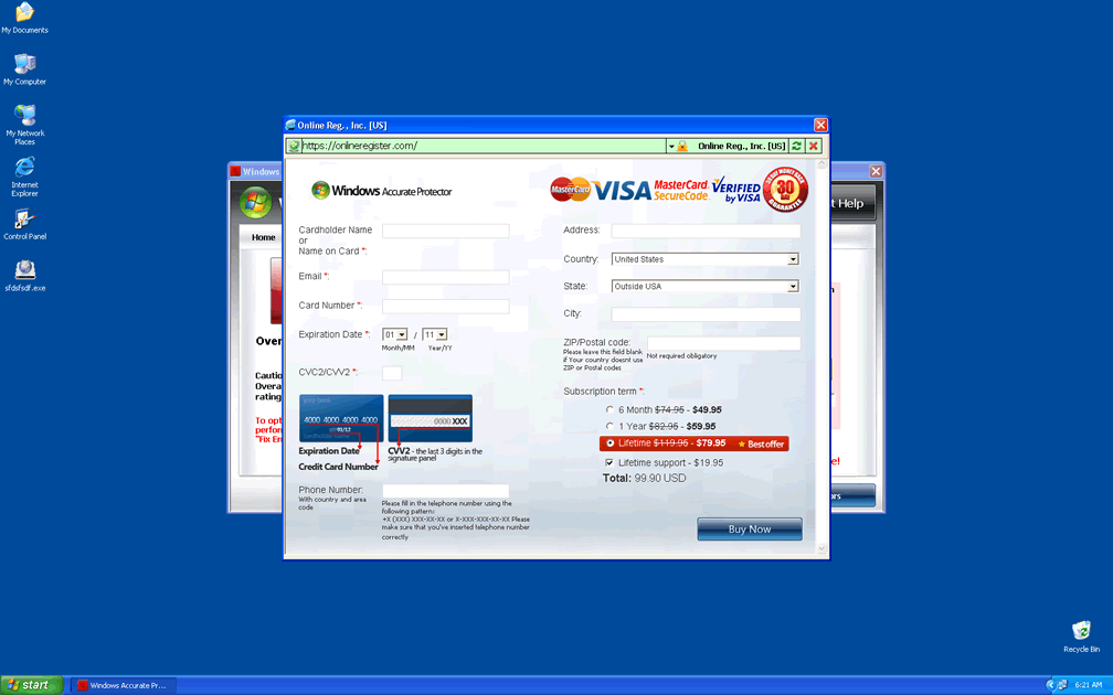 Windows Accurate Protector will use these messages as another step in its ploy to make you buy into a worthless 'full' version of its software. Naturally, you should avoid this, and any credit card that's already been compromised by Windows Accurate Protector or affiliated entities should be cancelled to avoid any other fraudulent charges.