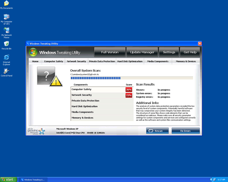 The Trojan follows this up by showing a fake Trojan detection before it installs Windows Tweaking Utility or another rogue program from the same family.
