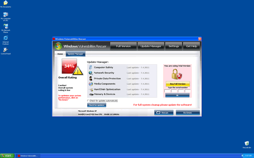 Windows Vulnerabilities Rescuer has far worse attacks in store for your PC, however, which makes it important that you remove Windows Vulnerabilities Rescuer as soon as possible: