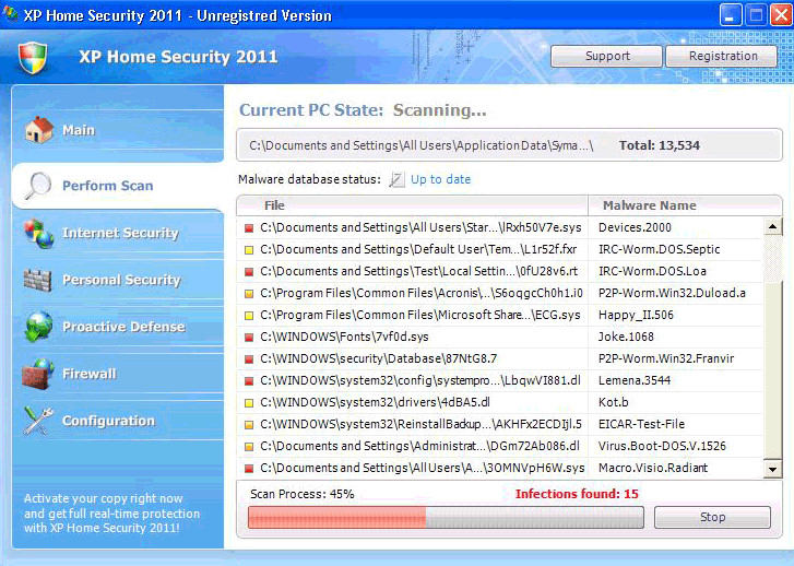 Private data can be stolen by third parties, including credit card details and passwords.This can disable all your actual security software, making the deletion of XP Home Security 2011 that much more difficult.
