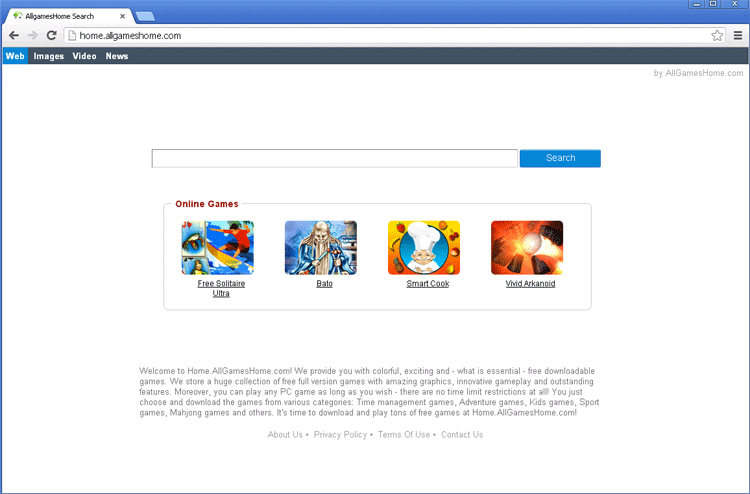 Allgameshome.com is a Flash gaming site that also includes browser-hijacking tactics in its gaming downloads. While Allgameshome.com's games aren't especially dangerous to your computer, they may redirect you to Allgameshome.com without your permission and encourage you to use its search engine (which includes potentially unsafe sponsored results). Given these undesirable traits, SpywareRemove.com malware researchers recommend that you think carefully before installing software from Allgameshome.com and be cautious when using its search engine – especially since equivalent sites that offer the same features without Allgameshome.com's disadvantages are easily available. You also should feel free to use anti-malware and related security software as necessary to make sure that unwanted browser changes from Allgameshome.com are removed.