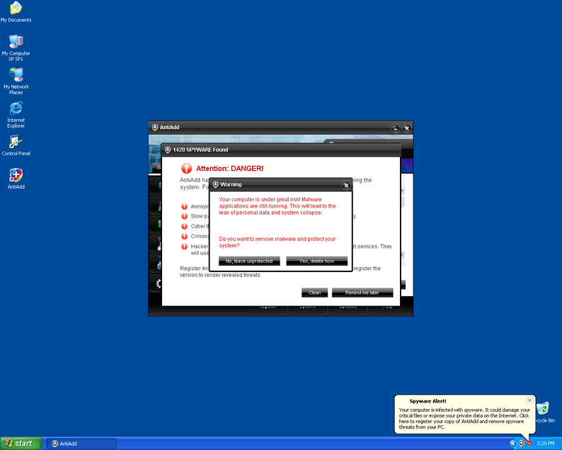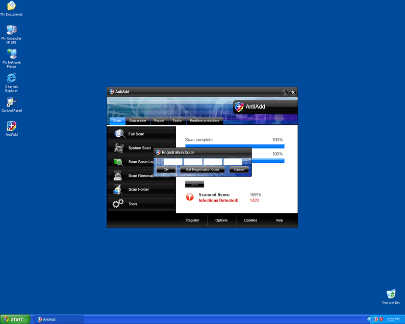 AntiAdd is a rogue anti-spyware program that scares its victims with fabricated reports claiming parasites are lurking on the computer. AntiAdd belongs to the WiniGuard family which includes rogueware such as Soft Soldier, Security Soldier and various others. AntiAdd uses malicious trojans to spread and can be downloaded directly from a malicious website. AntiAdd will infiltrate a system and perform a fake system scan without the user's permission. On completion of the scan AntiAdd will claim that your computer is critically infected with various malware, followed by a recommendation to purchase the full version in order to remove the supposed threats. All scan reports, pop-ups and virus alerts from AntiAdd are false and must never be trusted.
