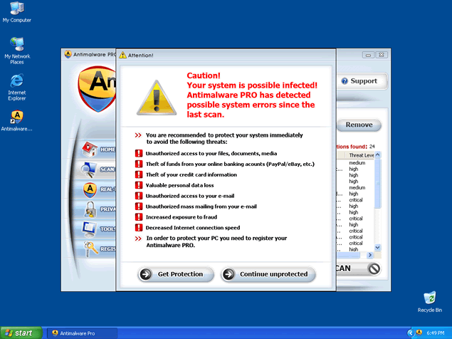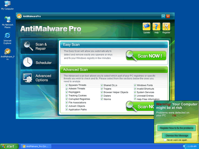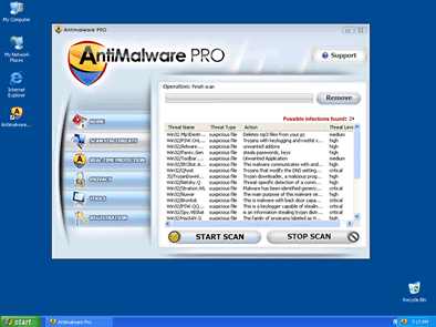 AntiMalware PRO is a rogue anti-spyware program and clone of Antivirus 2009. AntiMalware PRO may infect your computer through a Trojan, spam emails or it may have come bundled with another malicious program. AntiMalware PRO sells itself as an effective spyware remover tool, however, all it does is make you believe you're infected with numerous spyware threats to offer its "licensed" program.