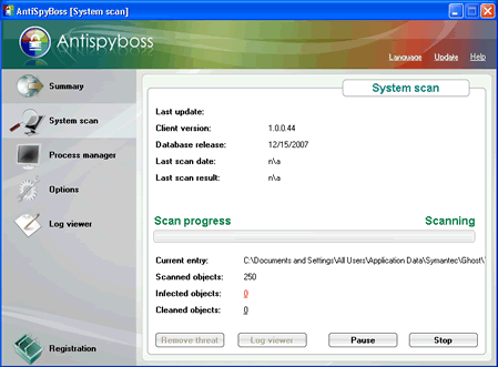 AntiSpyBoss, or AntiSpywareBoss, is a rogue anti-spyware application designed to scare you into purchasing AntiSpyBoss's full version with misleading warning messages that pop up on your Taskbar. AntiSpyBoss is usually downloaded and installed via ZLOB/MediaAccess Codec installer from an adult site. Once you're infected, the Zlob Trojan will display misleading warning messages. AntiSpyBoss warning messages claim that your computer is infected with dangerous parasites/virus/trojan in an attempt to trick you into purchasing AntiSpyBoss's commercial version. In addition, AntiSpyBoss may generate annoying popup advertisements that may cause unstable system performance.