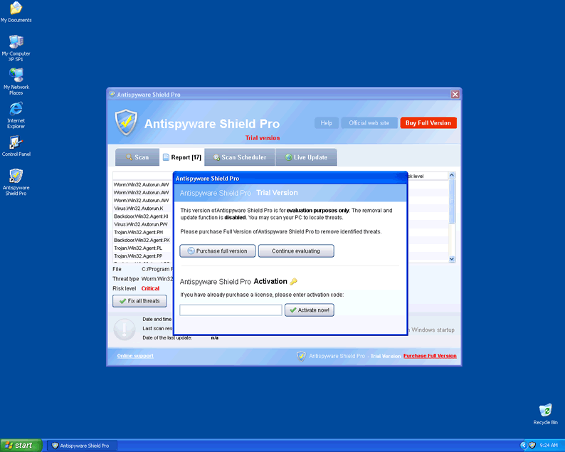 Antispyware Shield Pro is a rogue anti-spyware program that uses fake security alerts and system scan results to make computer users believe that they must purchase the useless Antispyware Shield Pro program to remove the so-called "threats". You need to delete Antispyware Shield Pro from your machine as soon as you detect it. If you need help detecting it you can make use of an authentic anti-spyware application that will detect as well as remove Antispyware Shield Pro for you. It is highly suggested that you make use of the automatic removal method as opposed to the manual removal method.