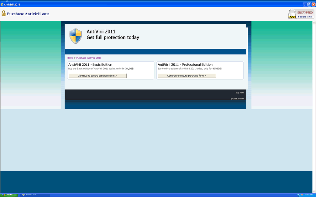 Other family members of Antivirii 2011 include Spyware Protect 2009, Antivirus System Pro, Security Central, Antivirus Soft, Antivirus Suite, AntiSpyware Soft, Antivir Solution Pro, Security Suite, Malware Destructor 2011, Antivirus Action, Antivirus Scan, PC Security 2011, Antivirus .NET, AntiVira Av, AntiMalware GO, Antivirus Monitor and AnVir Security Suite.
