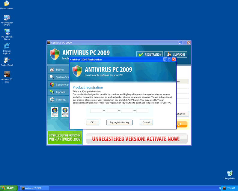 Antivirus PC 2009 is a rogue anti-spyware program from the same family of rogues as Antivir, Alpha Antivirus, Windows Protection Suite and Malware Catcher 2009. These rogue anti-spyware applications are all useless software and not security programs. Antivirus PC 2009 sneaks inside your system with the help of Trojans who operate stealthily to catch the user unaware. Users who visit corrupt websites or use video codec upgrades to watch movies or videos online may also be prone to an Antivirus PC 2009 invasion.