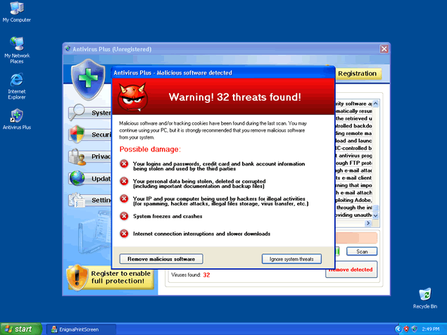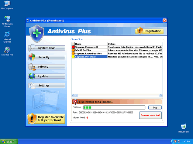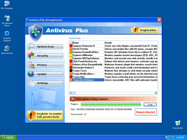 Antivirus Plus, also known as AntivirusPlus or Antivirus +, is a rogue anti-spyware program known to usually infect computers through Trojans bundled in fake video codec downloads. You may also have downloaded Antivirus Plus's trial version from a malicious website thinking it would get rid of your spyware issues.