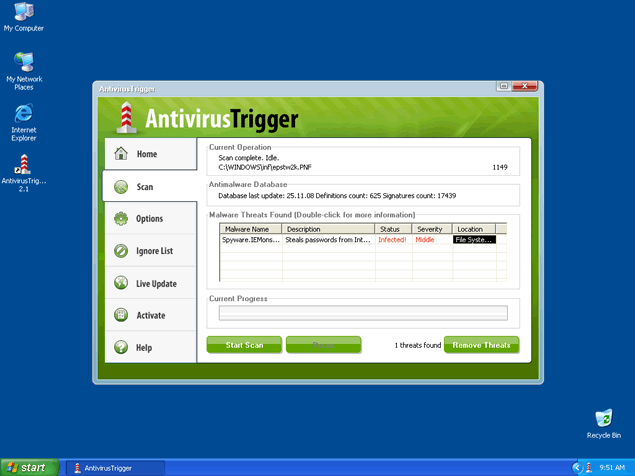 All links provided by Antivirus Trigger will most likely redirect you to malicous websites that sell Antivirus Trigger as a legitimate spyware remover. Antivirus Trigger has the ability to recreate itself after reboot. It is strongly recommended to remove Antivirus Trigger from your system upon detection.