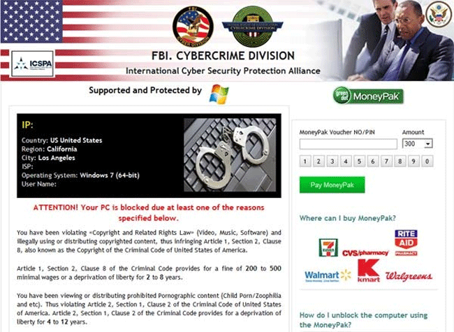 'Attention! Your PC is blocked due to one of the reasons' Virus is a fabricated pop-up message related to the FBI Cybercrime Division ransomware threat. The 'Attention! Your PC is blocked due to one of the reasons' Virus message is one that attempts to make an accusation of your system being locked or blocked because you conducted illegal activities and the FBI supposedly tracked it down. Through the 'Attention! Your PC is blocked due to one of the reasons' Virus message, PC users may fall victim to the scam and fines allegedly assessed through the FBI Cybercrime Division ransomware. 'Attention! Your PC is blocked due to one of the reasons' Virus message is just one primary part of the ransomware scam to entice payment of the fine through moneypak, which will eventually route your funds to the hackers who initially created this scam. It is best that the 'Attention! Your PC is blocked due to one of the reasons' Virus message not be taken for face value and you utilize antispyware software to safely detect and remove the ransomware behind the 'Attention! Your PC is blocked due to one of the reasons' Virus notification.