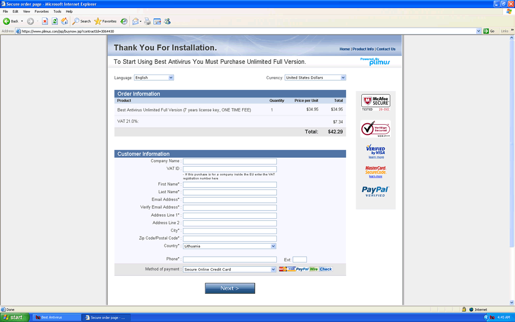 File name: BestAntivirus.exeSize: 2.7 MB (2700288 bytes)