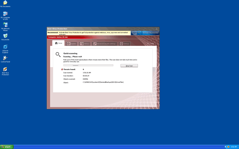 Launching Windows will also allow Best Virus Protection to launch without any means of disabling this unwanted 'feature,' and from this vantage point, Best Virus Protection will display fake system scans and fake warning messages with a worrying alacrity. SpywareRemove.com malware experts recommend that you ignore warning messages that appear to be from Best Virus Protection.