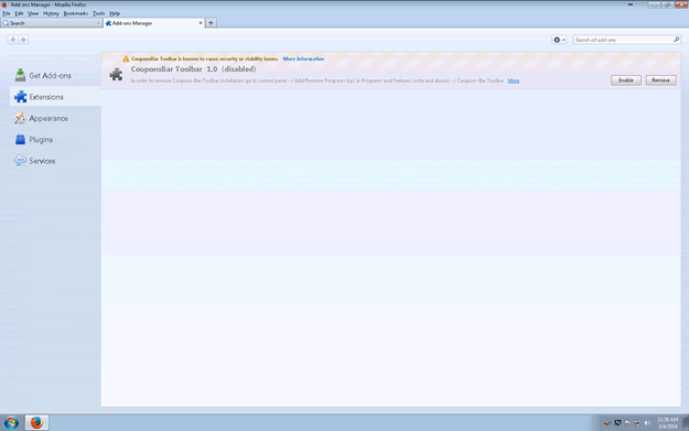 An examination of this 'search engine' by malware researchers quickly revealed that most of its results were from affiliated partners or were borrowed from other search sites with a better reputation than Coupons-bar.com. In many cases, Couponsbar's search results were irrelevant to the terms entered, making this add-on's reason for existence highly questionable. Nonetheless, Couponsbar's search site doesn't have any known affiliation with compromised sites that could harm your computer or your Web browser; at least, any more than Couponsbar already might be doing with its hijacks.