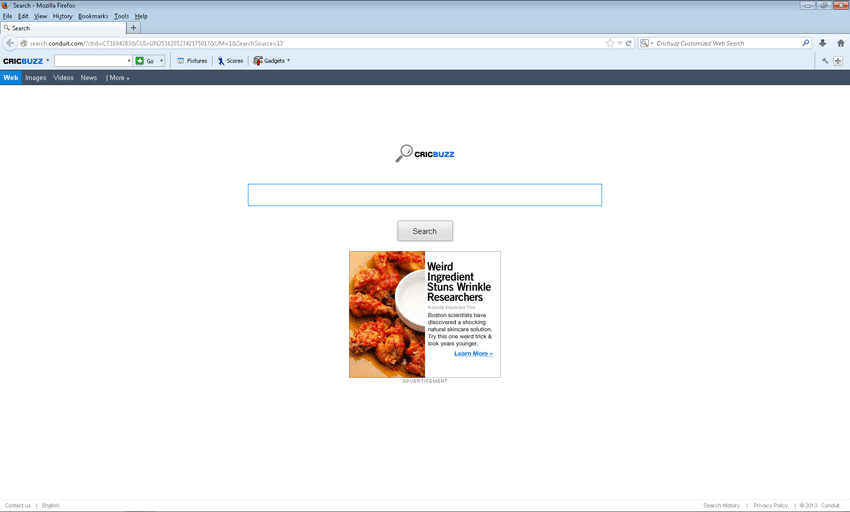 CricBuzz Toolbar is an unwanted toolbar/potentially unwanted program, which may come inside the computer system bundled with other free applications. CricBuzz Toolbar may also function as an adware or browser hijacker and forcibly divert PC users to various misleading advertising websites. CricBuzz Toolbar may also make PC users visit doubtful websites that are not associated with their search queries from any legal search provider. CricBuzz Toolbar can be downloaded manually. However, it can also come into the PC packaged with freeware that computer users download from unsafe sources. When installed on the computer system, CricBuzz Toolbar may modify system settings and hijack all web browsers in order to emerge on them as a toolbar. CricBuzz Toolbar may start interrupting the PC user's search sessions and divert him to various advertisement websites. CricBuzz Toolbar may keep track of the computer user's browsing habits and display commercial pop-up adverts.
