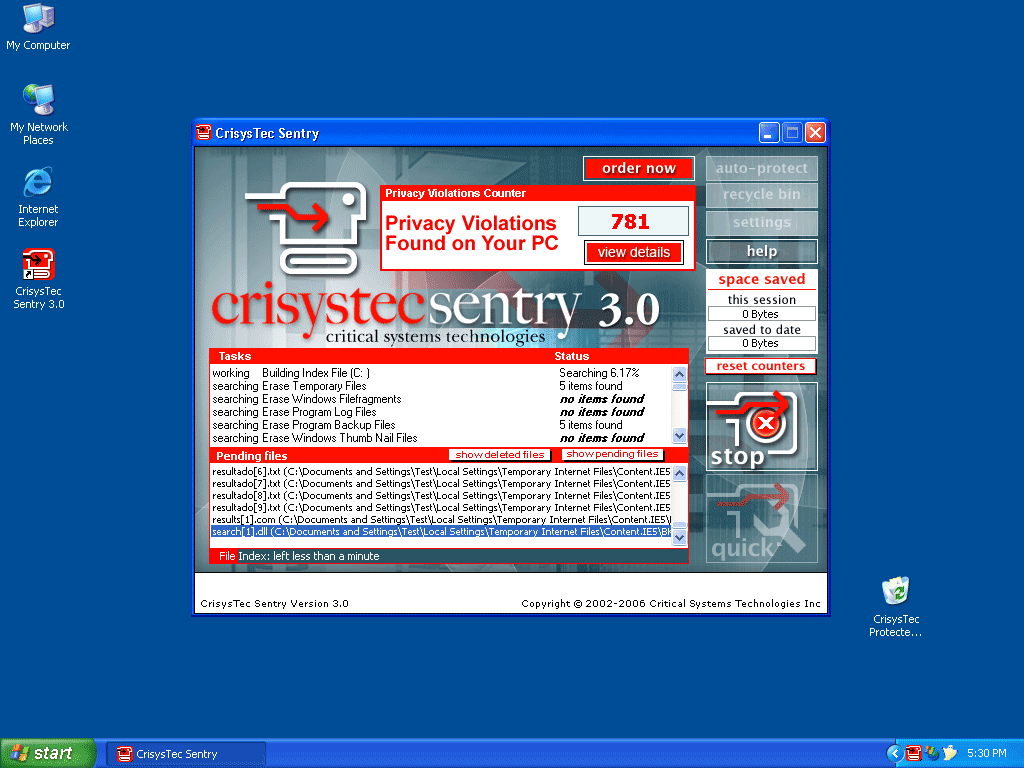 CrisysTec Sentry is a fake anti-spyware application that is often downloaded and installed by a Trojan, through browser security exploits, or via other nefarious mechanisms. CrisysTec Sentry badgers the user into purchasing the full version of the program by showing misleading warning messages and scan results. CrisysTec Sentry program is not going to clean your computer from spyware but might actually expose you to more security threats.