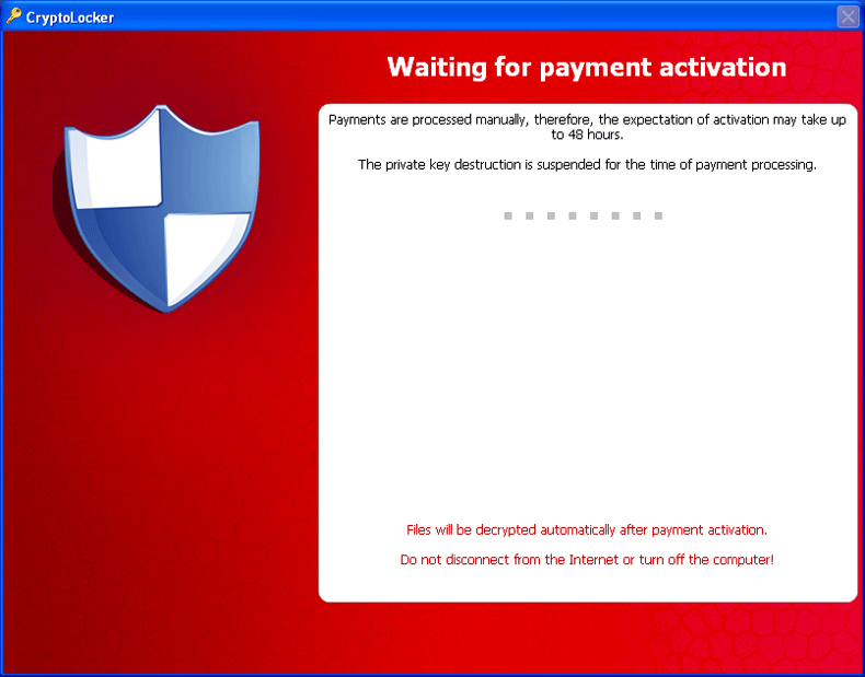 CryptoLocker is one of the relatively rare types of ransomware that follow up on their threats of encrypting the files on your PC, as opposed to threatening to do so and then using a pop-up alert to block your Windows access in general. Similar Trojans that perform approximately the same attacks include Trojan.Ransomcrypt.E, Win32:Ransom-AOQ, 'Say Hello To Little Virus Brings A Lot Of Problems' Ransomware and the ArchiveLock Trojan. Like most other PC threats of its type, CryptoLocker informs you of the attack by displaying a warning message that demands payment of a criminal's ransom fee – in this case, one approximating one hundred USD. This pop-up can block access to your desktop, which causes CryptoLocker also to be referred to as a Windows locker or Winlocker Trojan.