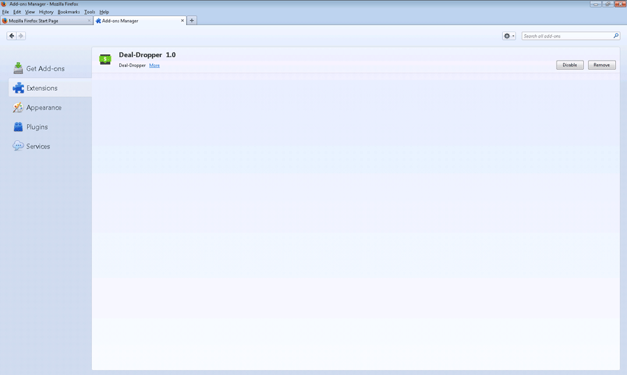 Deal Dropper is adware that may show annoying random advertisements on the screen of the computer when the PC user is visiting shopping related and social networking websites. The pop-up advertisements shown by Deal Dropper may provide PC users with numerous discounts and offers. If the computer user clicks on the pop-up ads delivered by Deal Dropper, it may unwillingly divert him to suspicious websites. Deal Dropper may be installed into Internet Explorer, Mozilla Firefox and Google Chrome while the computer user is installing freeware. While being installed on the computer system, Deal Dropper may change browser settings and modify the default start page and search engine with an unreliable website.
