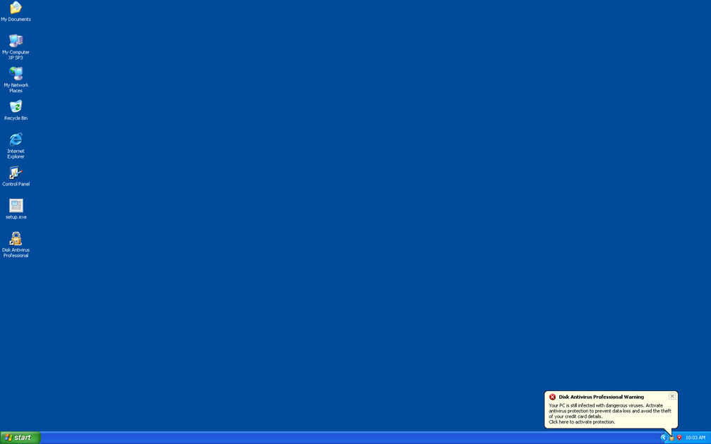 These faked attacks are Disk Antivirus Professional's path to forcing you to spend money buying a registered version of its program, which is equally useless for your PC's security and never should be bought. SpywareRemove.com malware experts also warn against other attacks that may result from any Disk Antivirus Professional infection, such as: