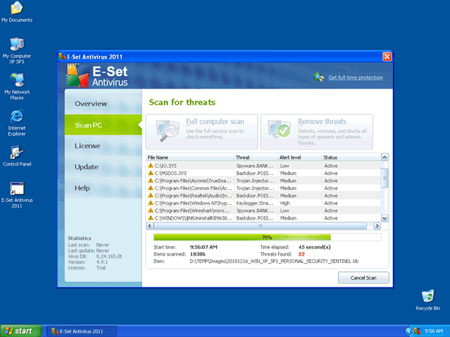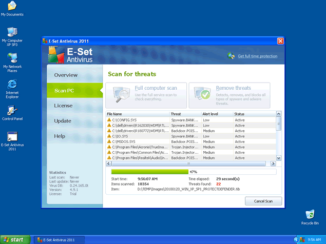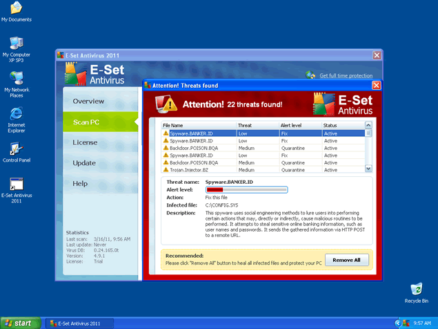 Infections and other problems warned of by E-Set Antivirus 2011 aren't really on your PC... or, if they are, then it's a coincidence, because this rogue anti-malware-application can't identify malware threats in the first place!