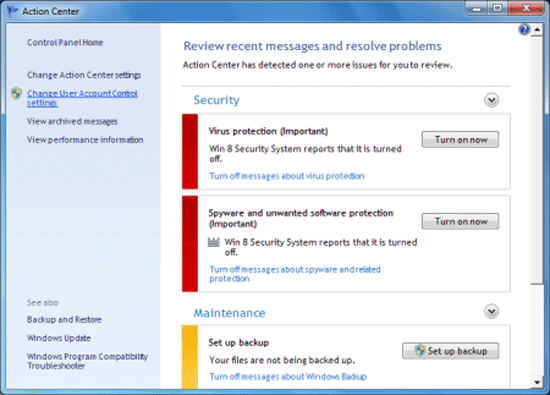 Since the presence of a Fake Windows Action Center will impede your ability to use the real Action Center's security features, SpywareRemove.com malware research team strongly recommends that you delete the Fake Windows Action Center with as much expediency as possible. Anti-malware software that can remove scamware associated with the Fake Windows Action Center also should be able to remove the Fake Windows Action Center.