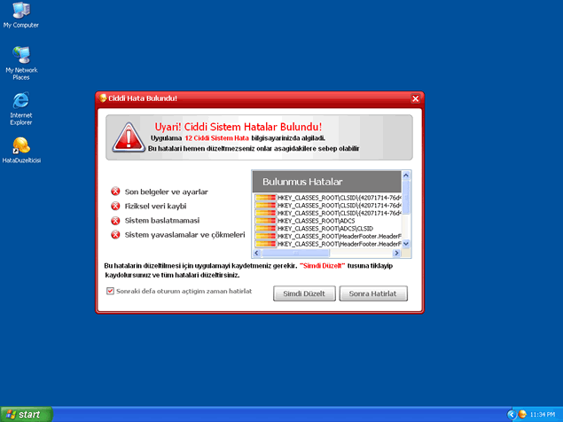 HataDuzelticisi is a deceitful application masqueraded as a legitimate anti-spyware program. HataDuzelticisi may be brought into your machine by a Trojan parasite though vulnerable security system spots. As soon as HataDuzelticisi is executed, it will try to scare you into purchasing its full version by displaying fraudulent threat messages. The parasites that HataDuzelticisi "detects" are either legitimate programs or files that don’t even exist. It is strongly recommended to eliminate HataDuzelticisi as soon as possible.