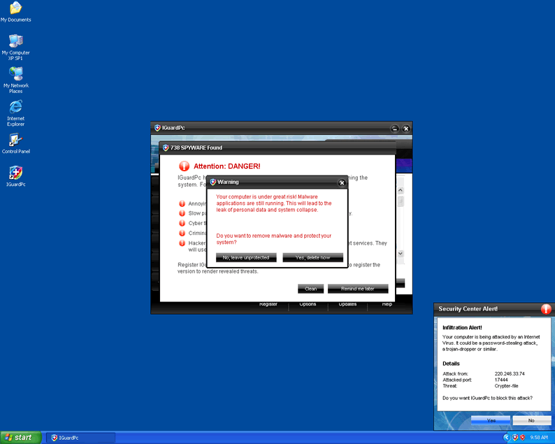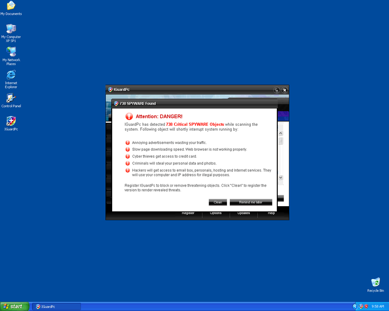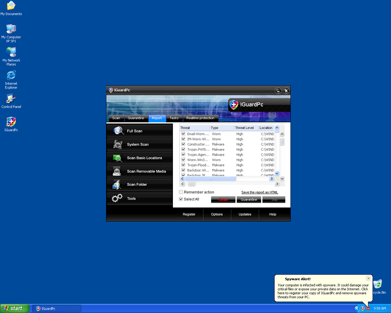 IGuardPc or I Guard PC, is a fake anti-spyware application. IGuardPc comes from the malicious group of hackers that created other fake security programs such as REAnti. IGuardPc, just like its predecessors, does not have the ability to detect and remove parasites from a PC. IGuardPc may claim to have the ability to clean your system of spyware but do not trust that.