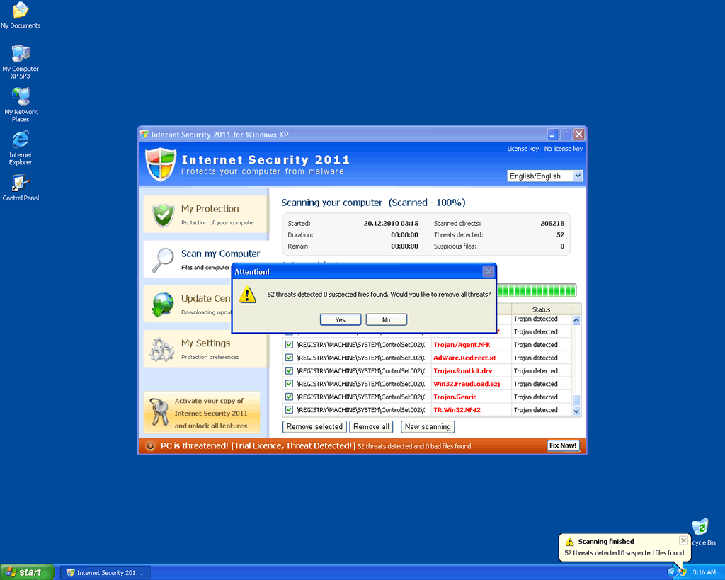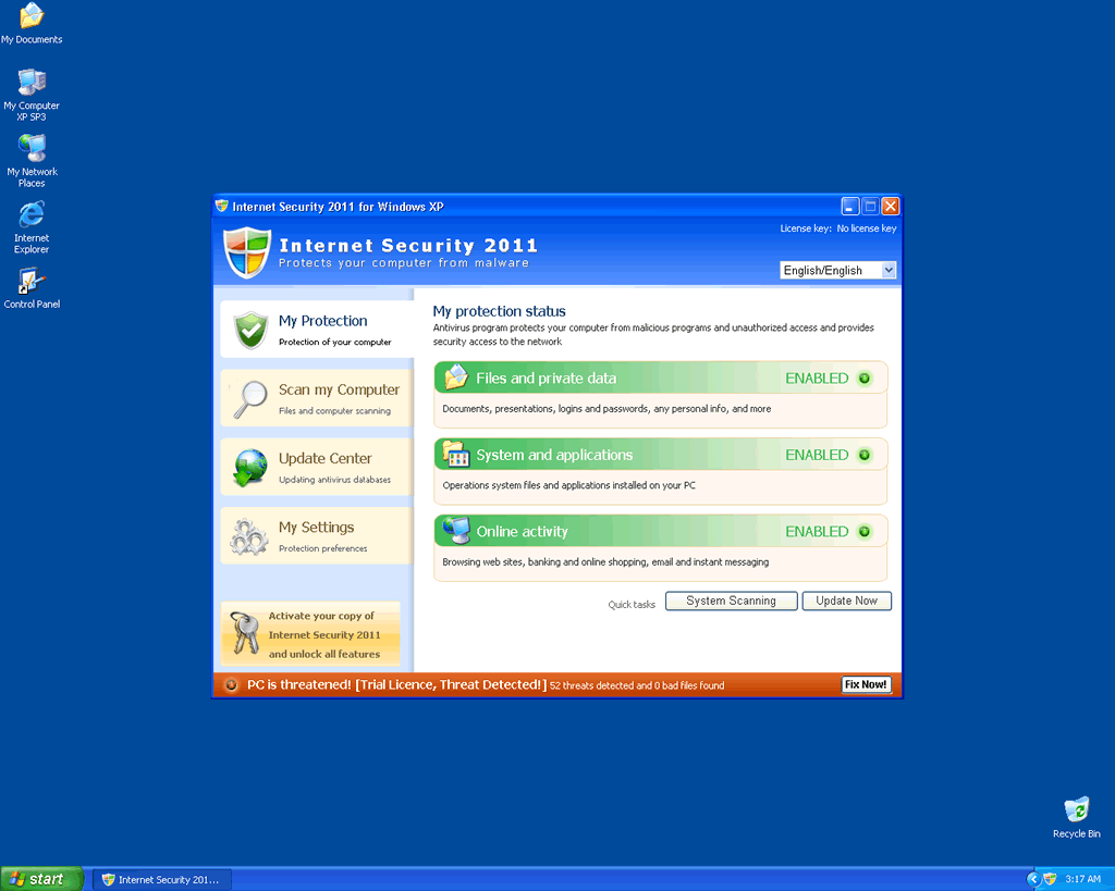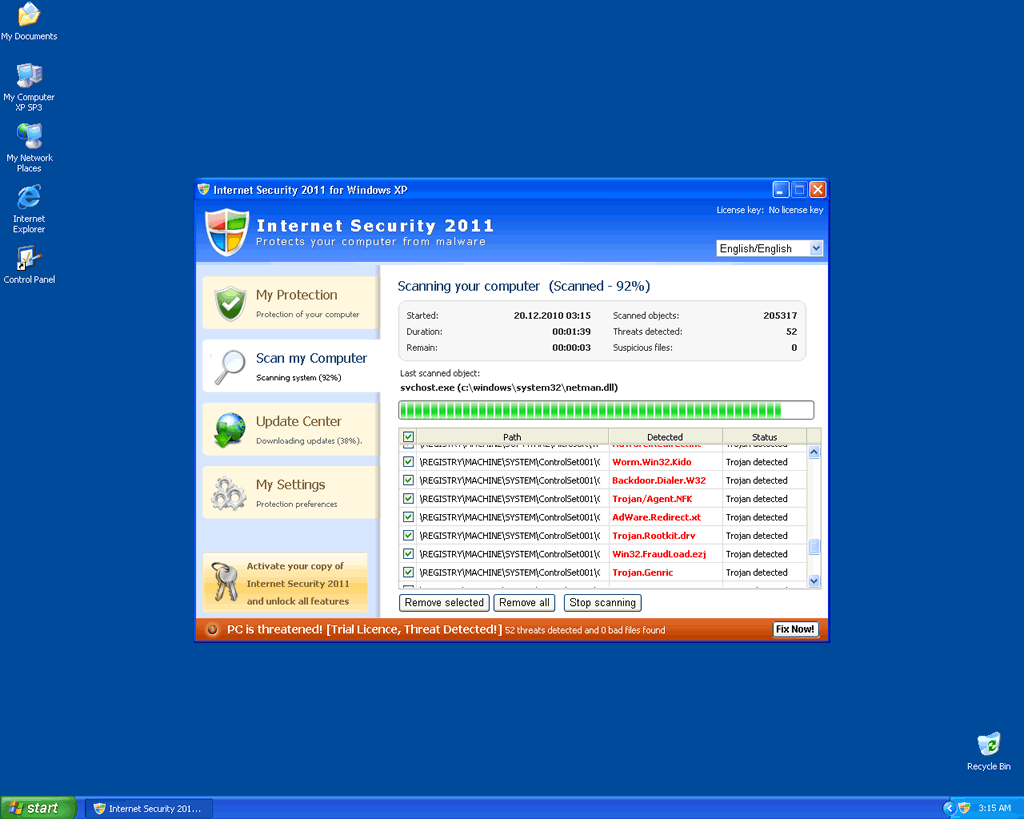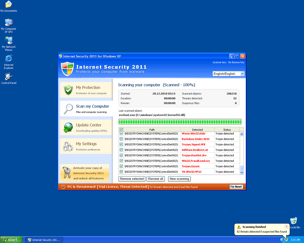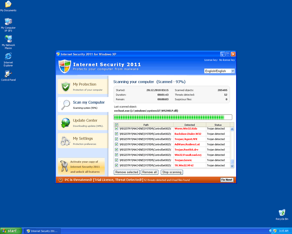Internet Security 2011 is known to not only be bundled with a rootkit parasite but in some cases it could easily install another rogue anti-spyware application or malware that causes the system to be unstable. The longer Internet Security 2011 stays on the infected system the higher the risk for serious system damages.