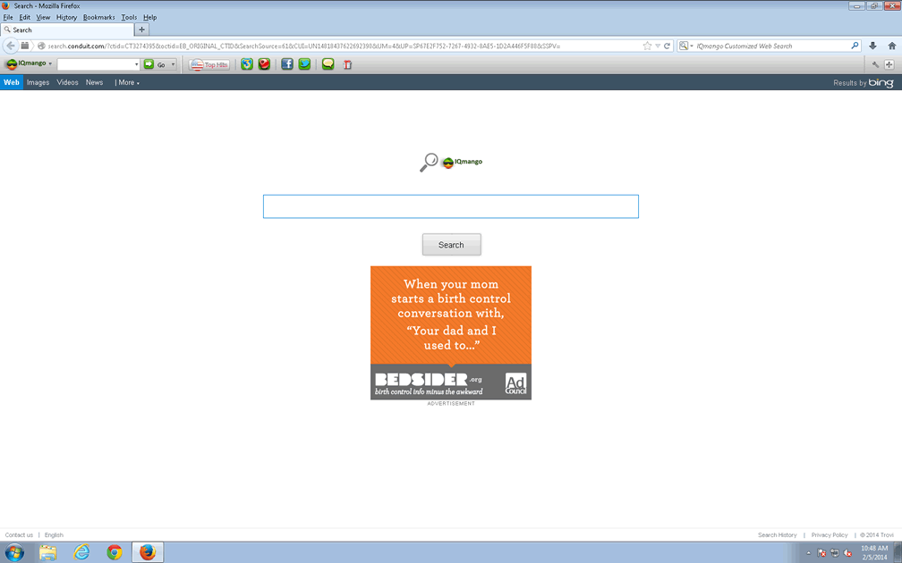 IQmango Toolbar is a Conduit toolbar (Community OurToolbar) created for Intenet Explorer and Mozilla Firefox Web browsers. IQmango Toolbar may collect and store information about a PC user's web browsing activity and transmit this information to Conduit so they can offer various services or provide computer users with advertising via the toolbar. IQmango Toolba may attempt to modify the default home page and search engine or a new tab page if the computer user is not careful throughout the installation of freeware and provide a search box and numerous other generic features. If the home page and the default search settings were changed by IQmango Toolbar, they need to be manually restored by the PC user if he decides to uninstall IQmango Toolbar. IQmango Toolbar may also automatically download and install updates without any notification to the PC user.