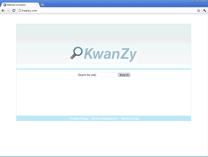 Kwanzy.com is a fake search engine that makes use of browser redirect attacks to force web browsers to load its site. Although Kwanzy.com complete with a stylish blue logo and magnifying glass logo looks like a safe search website, SpywareRemove.com malware experts have found that Kwanzy.com lacks any ability to provide relevant or safe results. Instead of favorable results, Kwanzy.com's result lists show links to sites that are profitable for Kwanzy.com's web masters – regardless of whether or not they're safe for your PC. If your web browser begins to load Kwanzy.com of its own accord or you have any contact with Kwanzy.com, it's recommended that you scan your PC with a suitable anti-malware application to remove any present Trojans, browser hijackers and related PC threats.