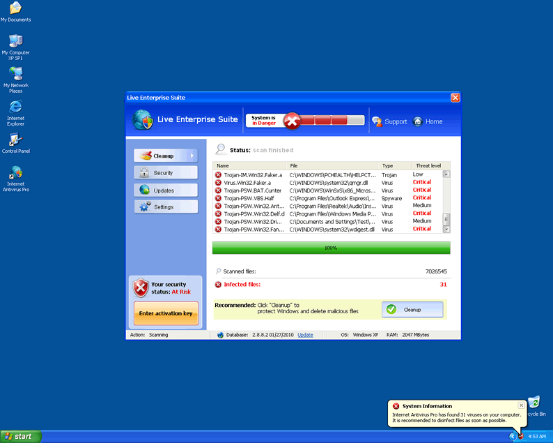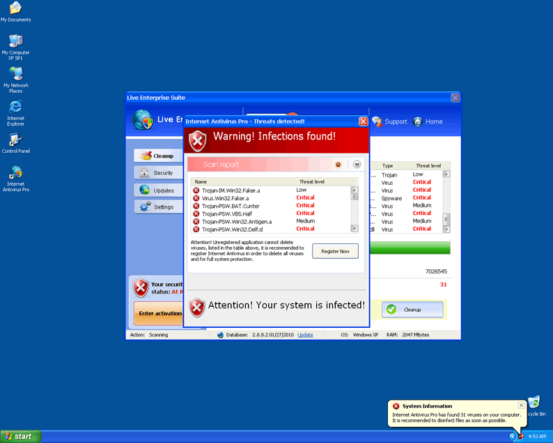 Live Enterprise Suite uses typical rogue anti-spyware tactics such as fake popup messages and falsified system scan results to scare users to the point of making a dreadful purchase of Live Enterprise Suite. Live Enterprise Suite does not have the ability to detect or remove parasites from any computer.