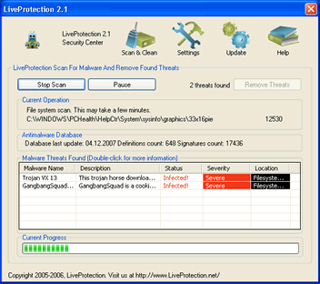 LiveProtection is a corrupt antispyware program that may download and install without your knowledge and permission through a Trojan. LiveProtection pops up fake security alerts on your taskbar in order to trick you into purchasing their software. LiveProtection may also download and install other unwanted software without your permission. LiveProtection is cloned from various well known rogue software products, such as DrAntiSpy, BraveSentry and SpyShredder.