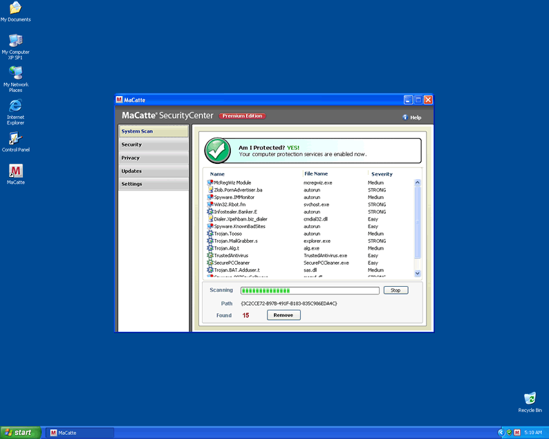 MaCatte Antivirus 2009 is not a trusted application and should be detected and removed immediately with a reputable spyware removal tool. MaCatte Antivirus 2009 does not have the ability to detect or remove legitimate computer parasites.