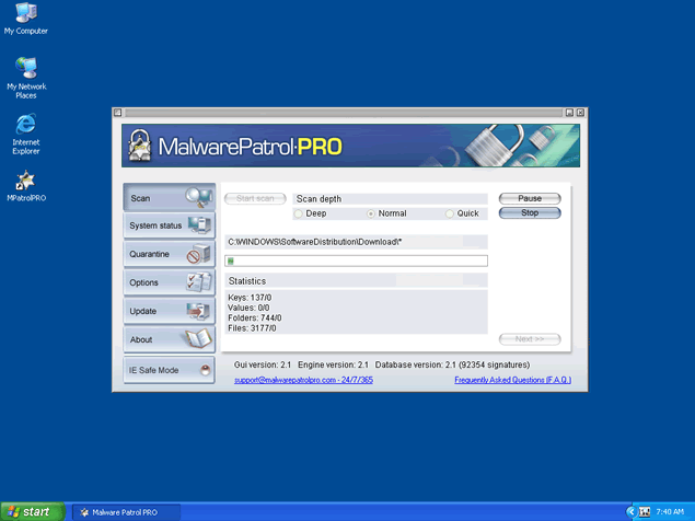 If you click on the fraudulent error message, a free trial version of MalwarePatrolPro may install on your computer. After MalwarePatrolPro runs a scan of your computer, it will then offer you to remove the parasites it "found" when you purchase the full version of the MalwarePatrolPro program. It is strongly recommended to remove MalwarePatrolPro from your system without any hesitation. MalwarePatrolPro is a clone of Antivirus2008.