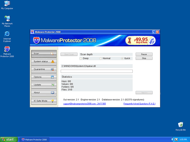 Malware Protector 2008 or MalwareProtector2008 is a fake anti-spyware program that may be installed by a Trojan infection. Malware Protector 2008 is known to display popups and system notifications warning computer users of an infection. This is usually a bogus attempt to get you to purchase the Malware Protector 2008 program. Malware Protector 2008 can be extremely difficult to manually remove.