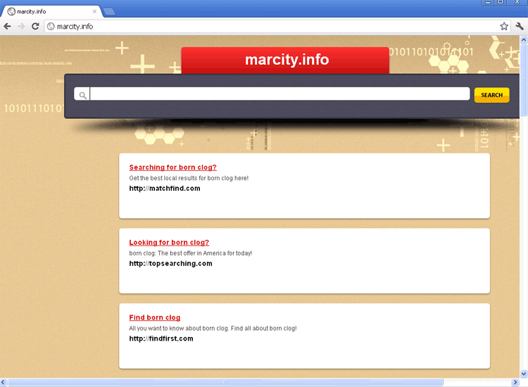 While links from Marcity.info may, upon occasion, take you to the actual search results that you wanted to visit in the first place, most attempts to use Marcity.info will expose you to sites that are irrelevant, advertisement-focused or stuffed full of content with questionable quality. SpywareRemove.com malware experts also note that this includes any advertisement-related links from Marcity.info, whose clones have been known to promote Blinkx.com and other sites with poor reputations.