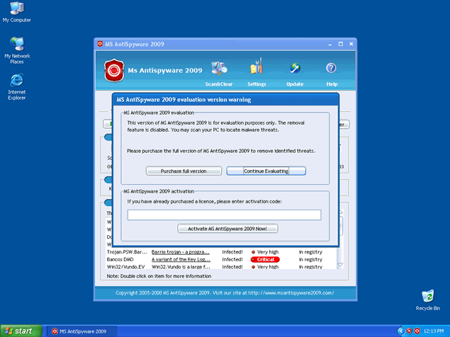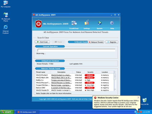 Zlob may pop up fake notifications to make you believe that your computer is infected with spyware. These fake notifications may appear harmless because they're designed to look similar to the messages issued by Windows Security Center. Although the makers of MS AntiSpyware 2009 seek to goad you into purchasing MS AntiSpyware 2009, this program should not be trusted. It is reported that MS AntiSpyware 2009 is associated with Pro AntiSpyware 2009, NanoAntivirus, and Antivirus 2009.