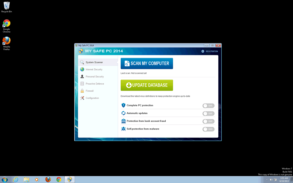 - In a less visible (but no less dangerous) attack than the above, My Safe PC 2014 also will make various changes to your browser that harm your PC's security. Typical changes may include blocking the Windows update cycle or deactivating your default firewall.