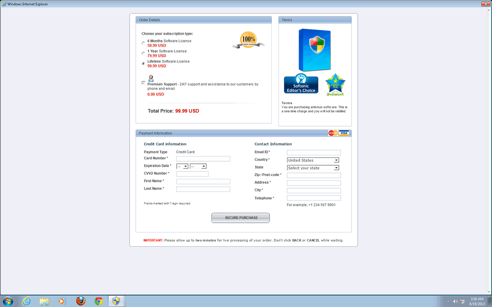 - If you attempt to use your browser to navigate to a security-related site (such as Microsoft.com), My Safe PC 2014 will hijack your browser and redirect it to a fraudulent warning page.