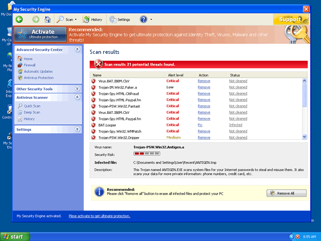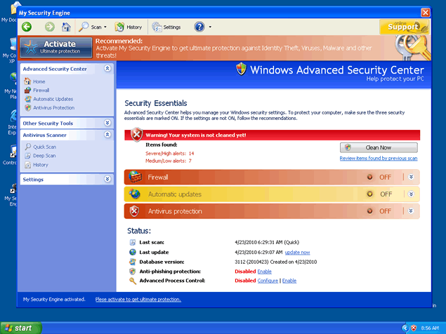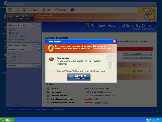 My Security Engine belongs to the FakeVimes family, which includes members such as Privacy Guard Pro, Extra Antivirus, Fast Antivirus 2009, Presto TuneUp, Windows Security Suite, Smart Virus Eliminator, Packed.Generic.245, Volcano Security Suite, Windows Enterprise Suite, Enterprise Suite, Additional Guard, Live PC Care, PC Live Guard, Live Enterprise Suite, Security Antivirus, My Security Wall, CleanUp Antivirus, Smart Security and PrivacyGuard Pro 2.0.