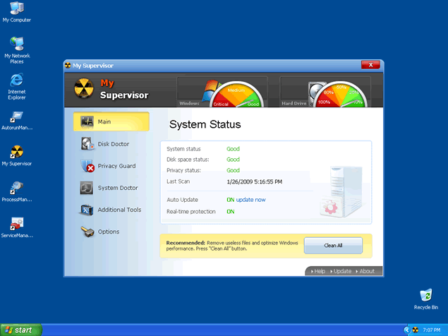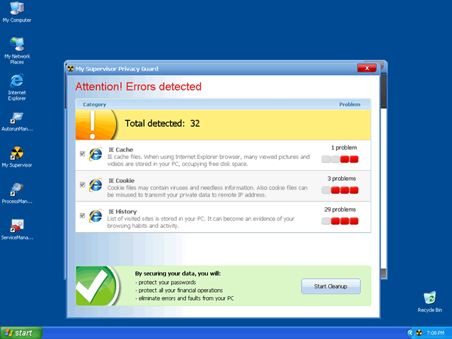 My Supervisor, or MySupervisor, is a fake anti-spyware program that uses fake system messages as a scare tactic. My Supervisor is a clone of Virus Doctor, Antivirus 2009, Vista Antivirus 2008 and Antivir64. My Supervisor is typically installed onto your PC when you download a video codec that comes bundled with a Trojan.